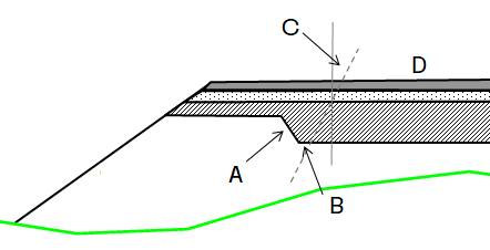 I figuren är inre fyllningsslänten utökad till djupsprängning i skärning