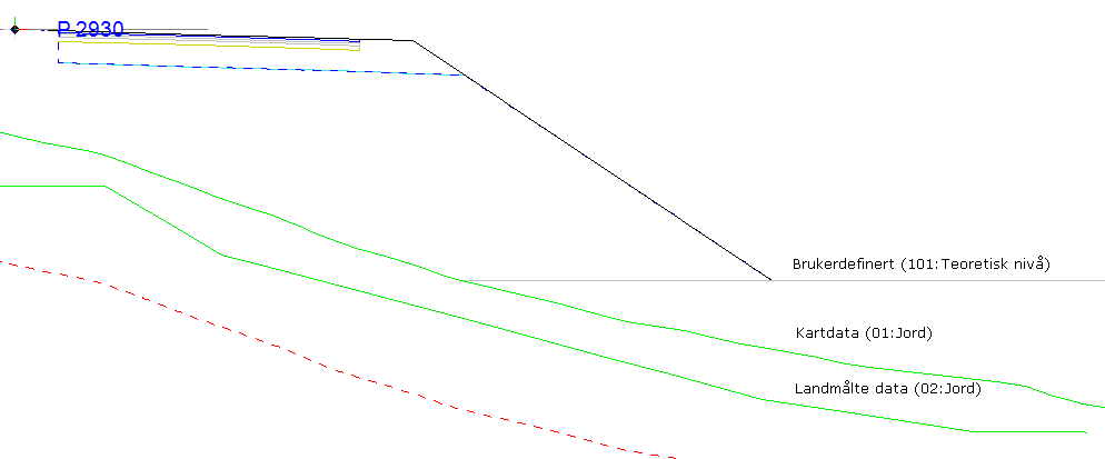 I detta fall har vi två skikt för jord: ett lager genererat från FKB-kartdata och ett lager genererat från inmätta data.