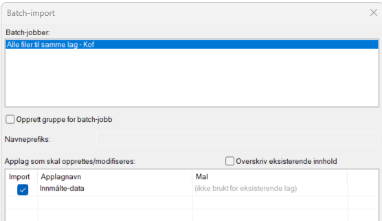 För standard GMI-import och GMI-import för lantmätning är det inte möjligt att importera utan att skriva över befintligt innehåll i filen. Fältet är därför grått och kan inte ändras.
