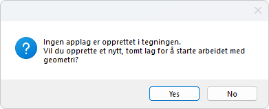 För att göra det enklare, speciellt för nya användare, får vi nu frågan om vi önskar att skapa ett nytt applikationslager och börja arbeta med geometri.