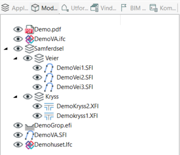 Funktionaliteten är nu likadan i listan för applikationslager och modeller. Vi kan skapa grupper och flytta modeller/grupper med dra och släpp.