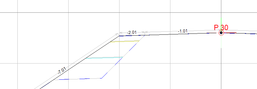 När vi sedan bygger ytorna får vi övergång från startyta med lutning lika lastlinje.