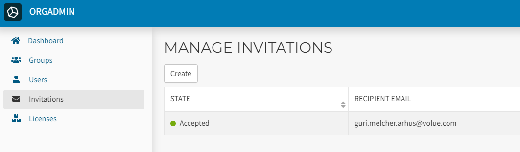 Under Invitations kan du se om sluttbrukeren har akseptert: