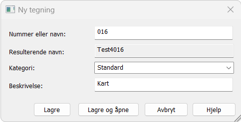 Standard navnekonvensjon er standardforslag, og programmet vil foreslå neste ledige når du oppretter en ny tegning. Denne navnekonvensjonen er det som tradisjonelt har vært benyttet i Gemini Terrain. Tidligere var det mye funksjonalitet knyttet til disse numrene.