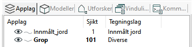 Nå kan vi bruke byggegrop med beregningstype volumkontur til å utføre masseberegning mellom lagene.