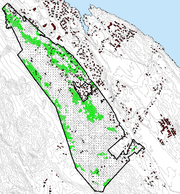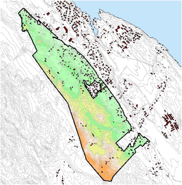 Eksempelet over viser områdene som har sjøutsikt. Andre eksempler på bruk kan være å finne de mest skjulte områdene for parkeringsplasser eller de beste områdene for kommunikasjonstårn.