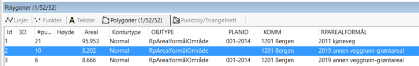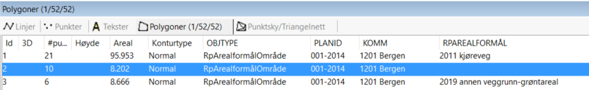 - Visuell sjekk at alle linjer, punkter, tekster og polygoner har objekttype