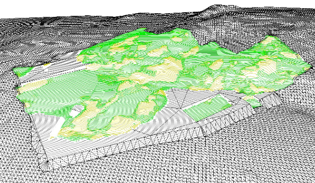 Konstruerte byggegroper kan du visualisere i render-modus. Triangelnettene (hoved- og sidenett) i hvert lag kan du koble mot render-materialer.