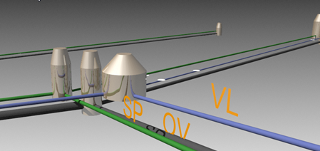 På format-menyen finner du valget Opsjoner planlegging, prosjektering og utførelse. Her kan du sette at VA-data skal tegnes som volumer i 3D-visning. Ledningsdiameter og kumdiameter gjengis med korrekt størrelse.