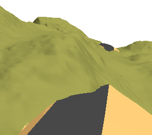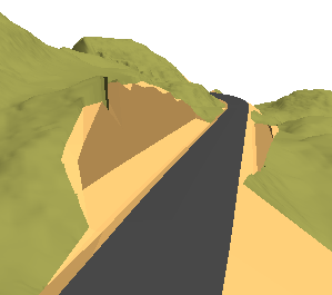 Veger kan kun gjøre visuelle inngrep i det øverste sjiktet. Hvis du har aktivert visning av et fjell-lag i tillegg, vil dette bli justert til inngrepet. Hvor godt det passer med inngrepet, avhenger av gridstørrelsen.