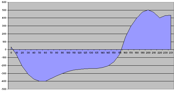Figur: Grafisk fremstilling av akkumulert massebalanse