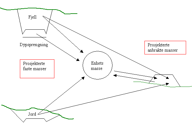 I prosjekteringsfasen er det viktigst å beregne massebalansen. Massebalansen beregnes ved å sammenligne massebehovet (prosjekterte anbrakte masser) med tilgjengelige masser (prosjekterte faste masser) i veglinjen.