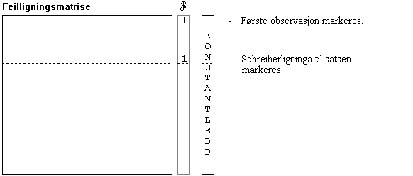 Figuren viser hvordan feilligningsmatrisen utvides med en søyle for grovfeilsparameteren.