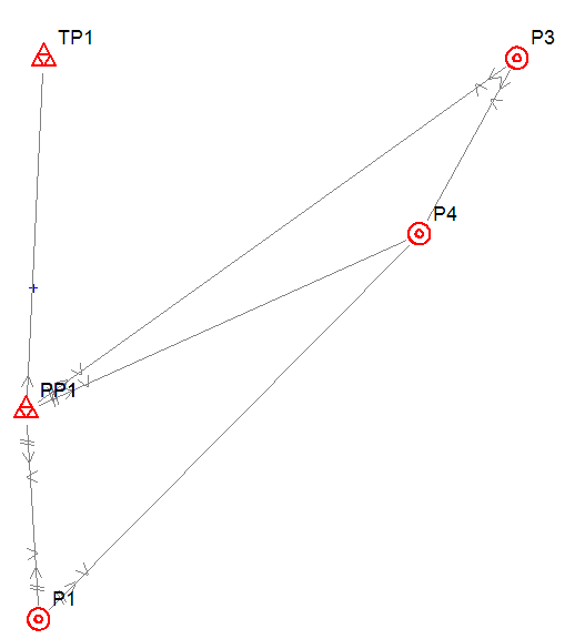 Ved flere tilfeller kan observasjonene være uten kontroll. Eksempler på dette er enkle polare innmålinger, men det kan tenkes mer uoversiktlige tilfeller, som f.eks. nettet vist nedenfor: