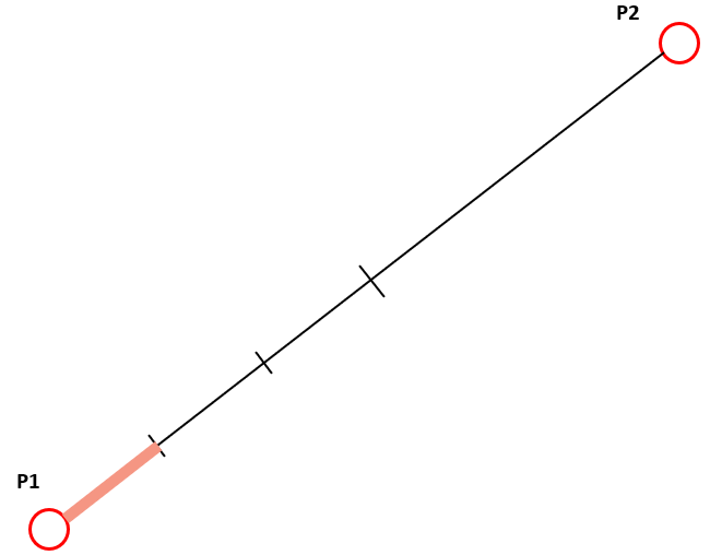 Avstanden mellom to punkter deles i to. Redundansmarkeringen refererer til en observasjon fra det nærmeste punktet. Hver halvdel deles igjen i tre. Er redundansmarkeringen nærmest punktet, refereres det til en avstand, deretter til en retning og til slutt vertikalvinkel.