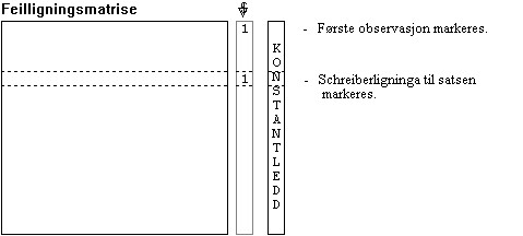 Dette medfører at vi får en ny konstantleddkolonne i normalligningssystemet. Denne må reduseres på vanlig måte, og vi finner koordinatutslagene ved tilbakeløsning av de ukjente.